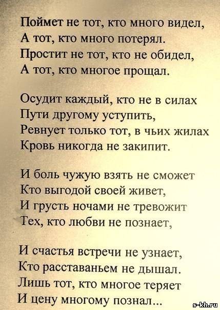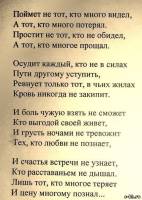 | Quote (Kisa-Kisa) Думаю условия жизни у всех разные, сложившиеся ситуации, окружение... Оправдывать можно все,что угодно...))) Но, почему-то одни преданны своему Внутреннему Миру, Душе, Миру в полном объеме и понимании... Порой совсем незаслуженно бичуют себя, чувственно казнят свое сознание переживаниями за совершенные поступки, действия, слова, которые по сути - совсем безобидны и не несут никому никакого зла, порой, напротив, пусть болезненно, но направлены на Добро... А другие, именно предавшие свой Внутренний Мир, Душу, Мир вообще, став холуями темных сил - всегда находят себе оправдание.)))