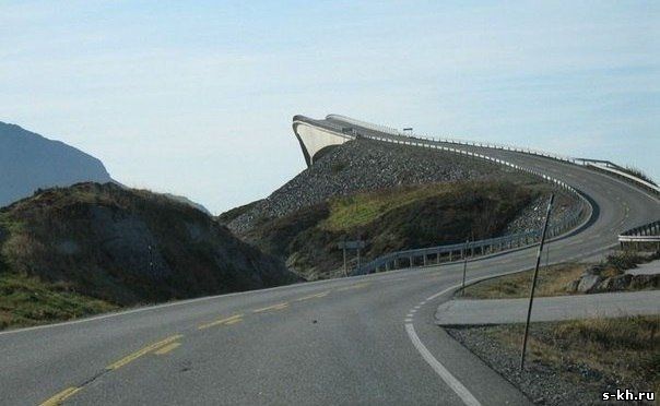 | Мост “Storseisundet bridge” В Норвегии построен таким образом, что под определенным углом, когда вы приближаетесь к нему, создается иллюзия того, что моста вовсе нет, а то, что вы видите, скорее похоже на огромный трамплин.